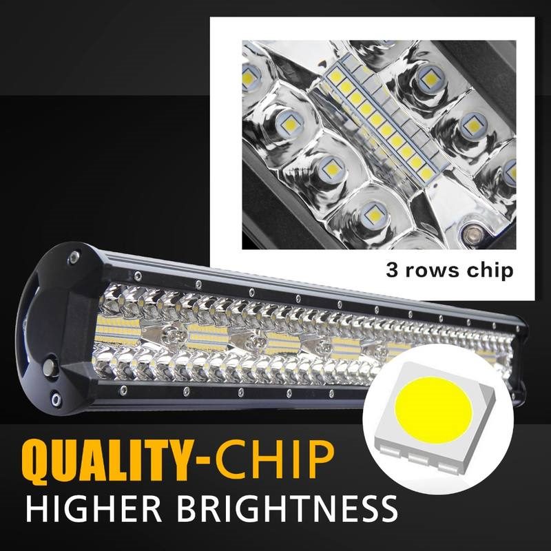 The three rows of work light is made of 180pcs *3w high intensity CREE led’s, concentrated spot and flood beam illuminates to further distance, allowing you to see the front side more clearly at the dark night.