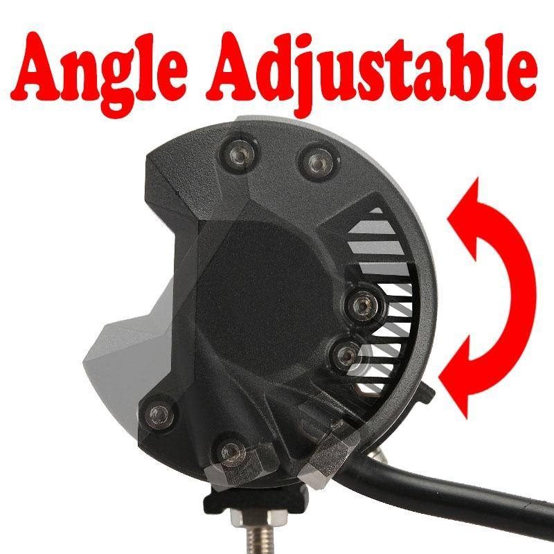 Easy installation – The LED work light is mounted via a stud. The stainless steel bracket is adjustable. Simply drills a hole in the mounting surface and passes the bolt through that hole. The angle of the light is set and that bolt is tightened to secure the angle.